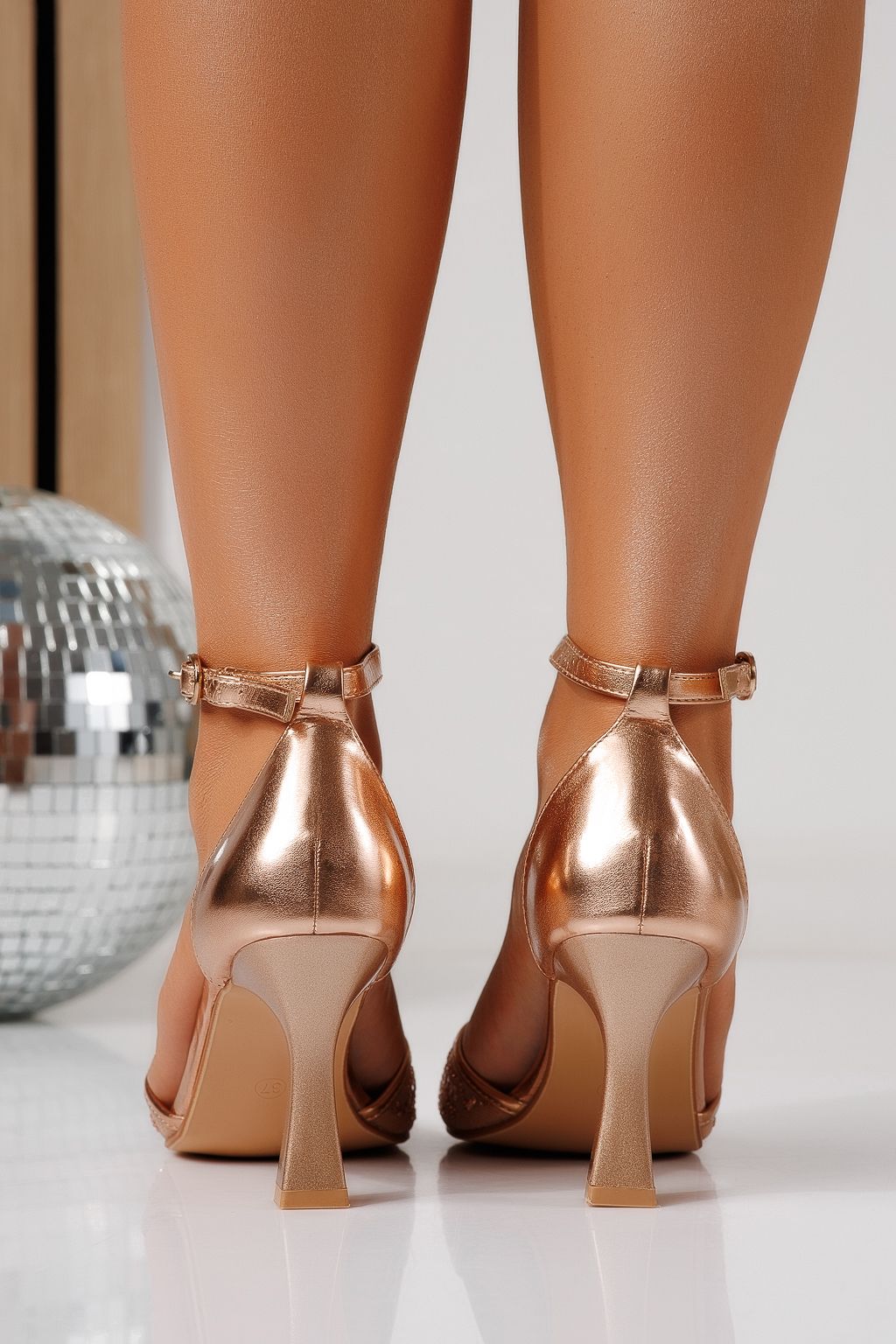 Női magas sarkú szandálok rózsaszín arany öko bőrből készült Lyra #24862