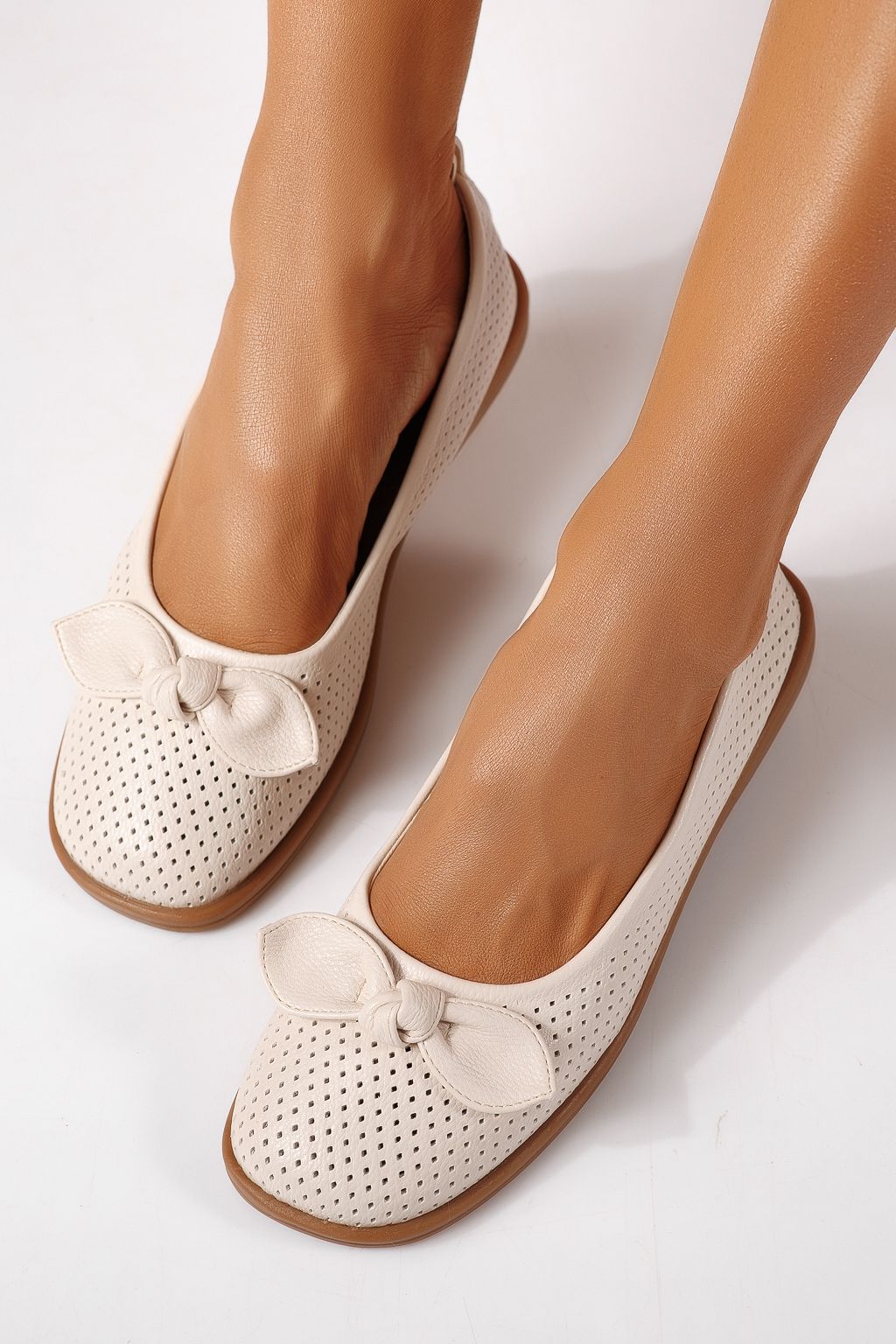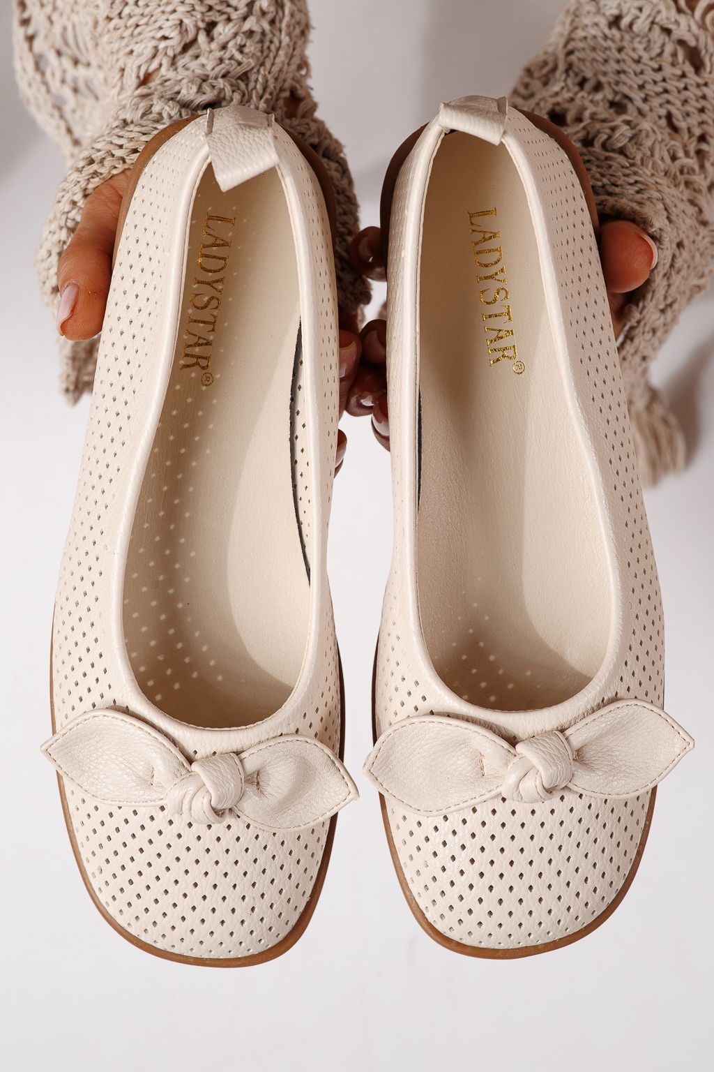 Női balettcipők bézs öko bőrből készült Amaris #24875