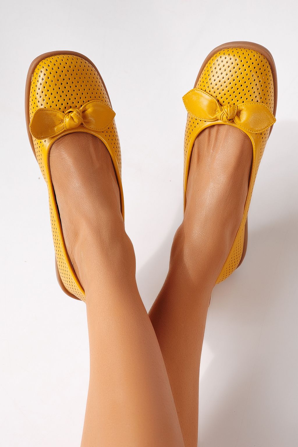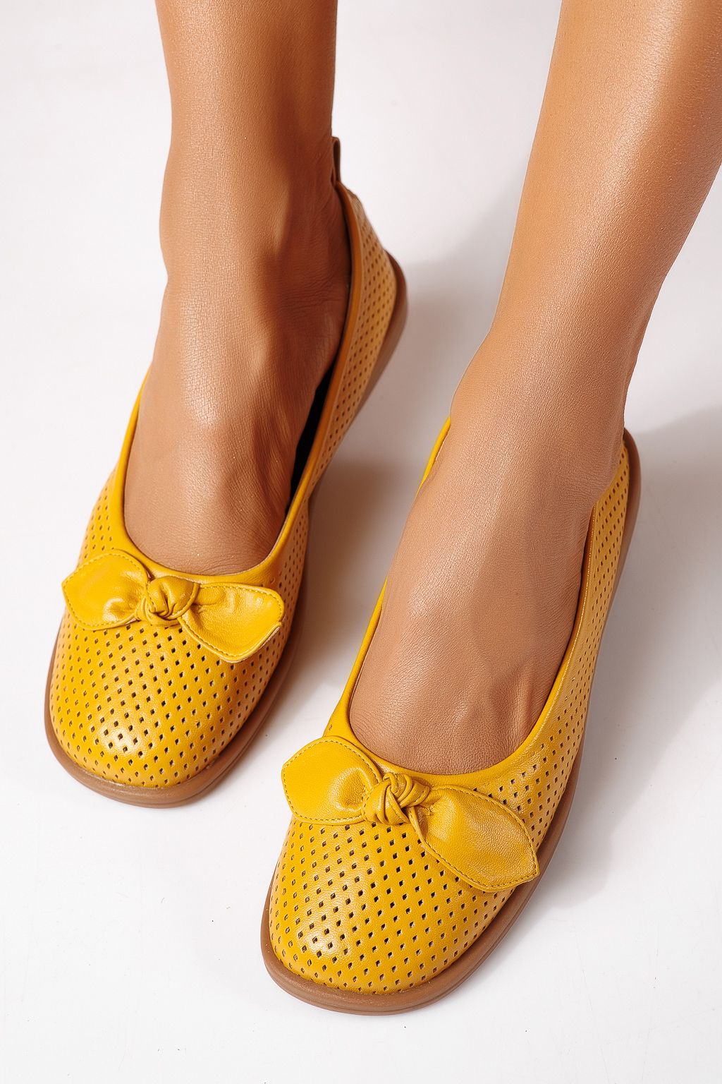 Női balettcipők sárga öko bőrből készült Amaris #24878