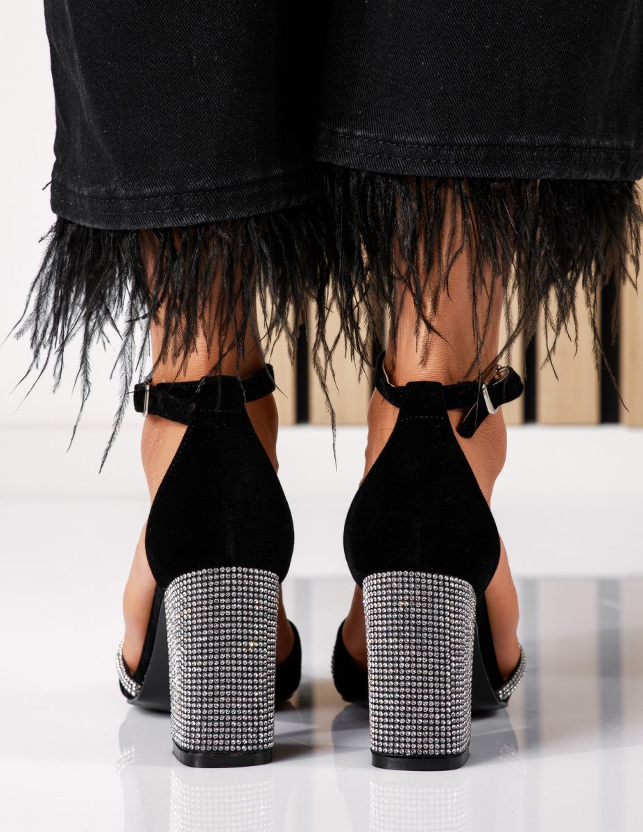 Caro Női Magassarkú Szandál Fekete Ökológiai Bőrből Velúr #24996