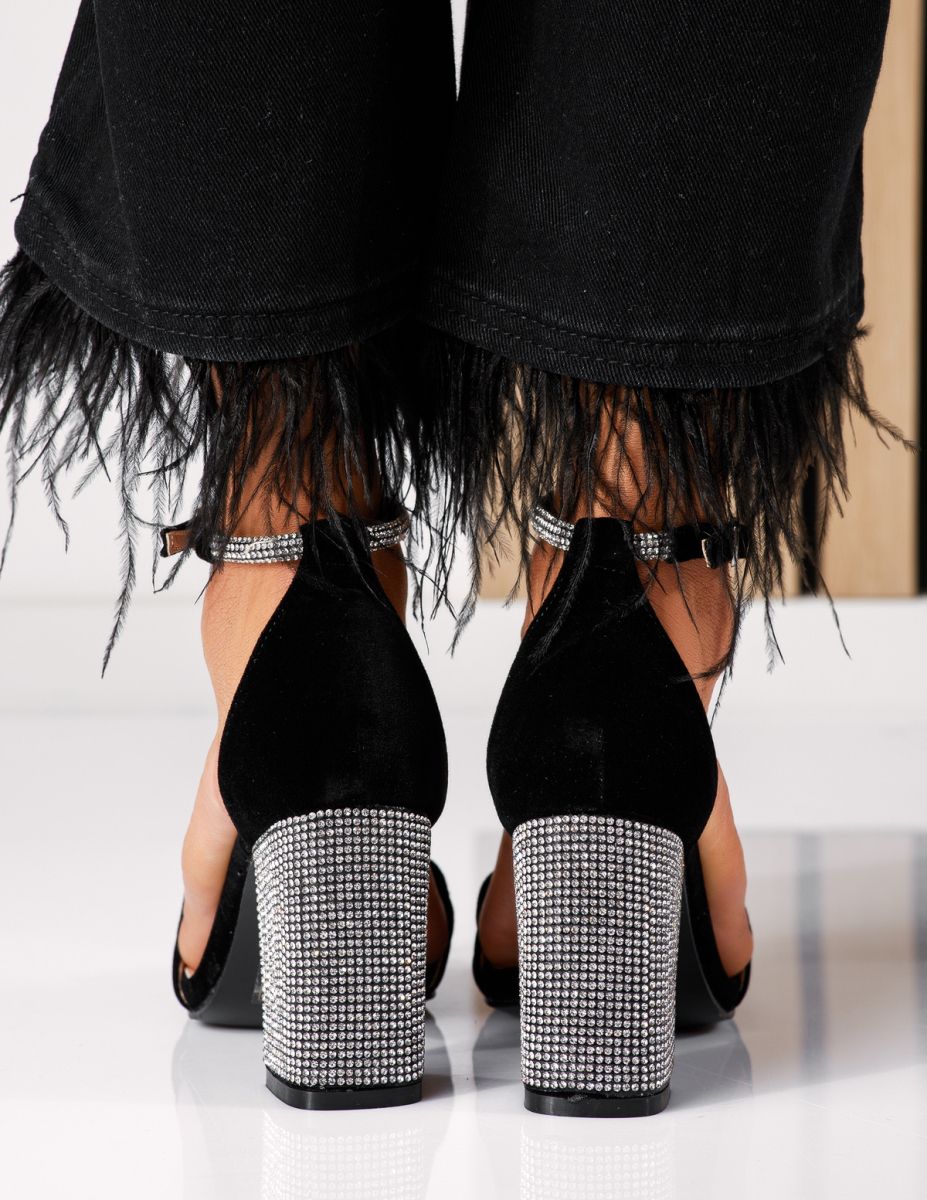 Hazel Női Magassarkú Szandál Fekete Ökológiai Bőrből Velúr #25002