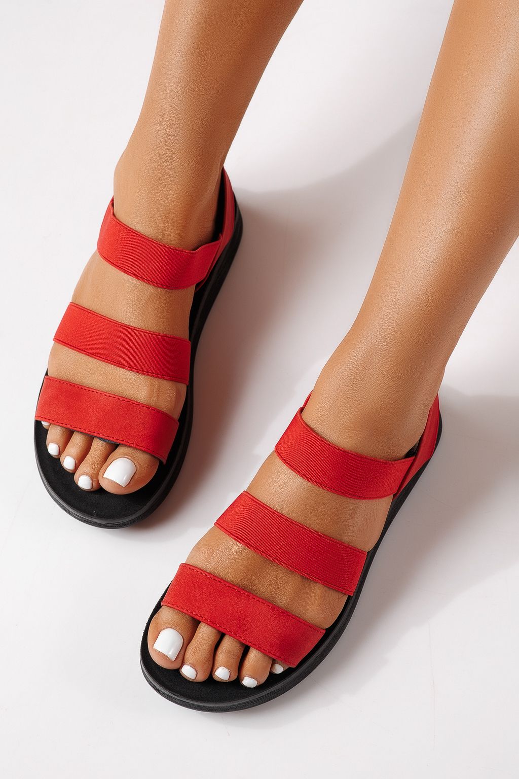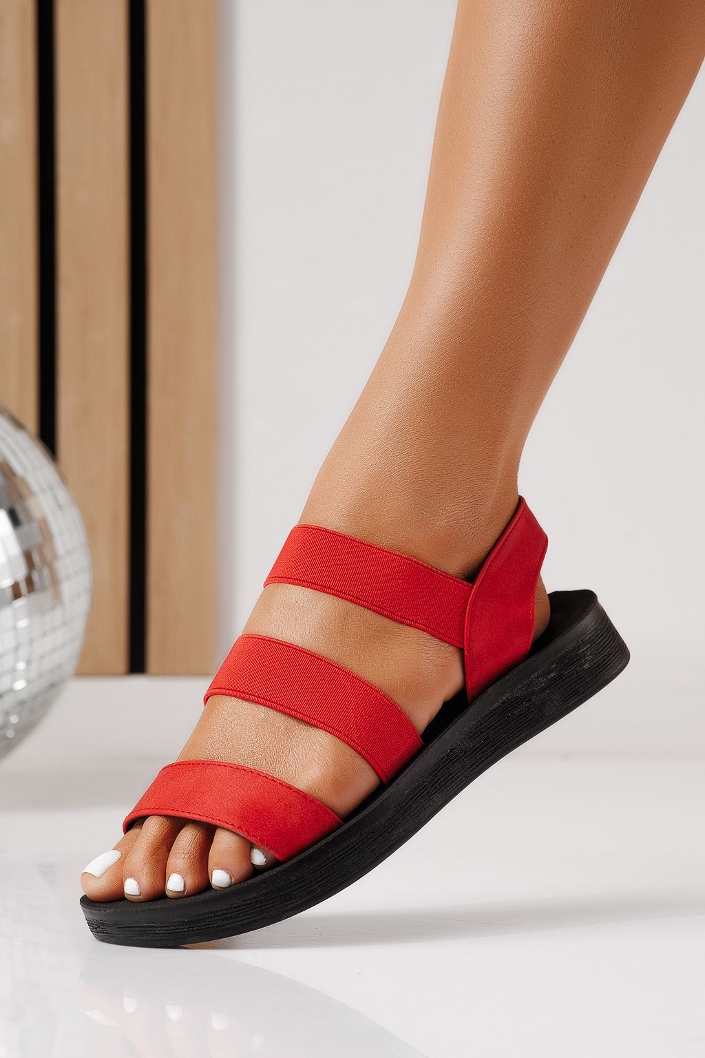 Főoldal Minden termék Női szandál Alacsony sarkú szandál Női alacsony sarkú szandálok piros öko velúrból készült Liora #25125