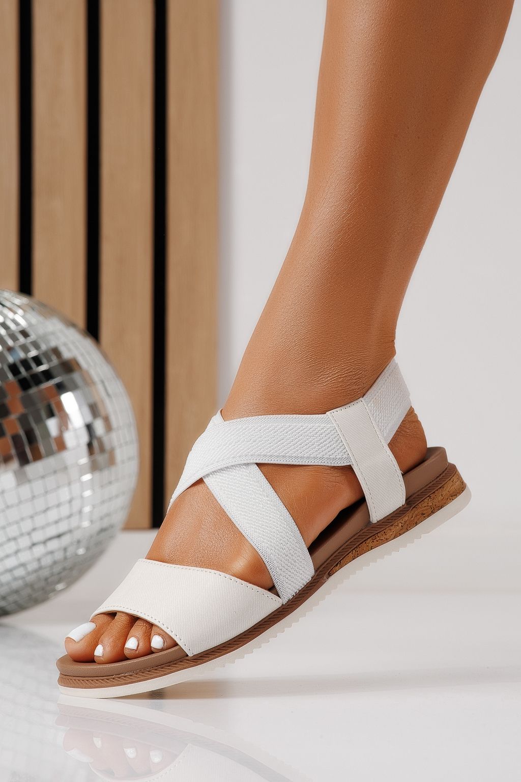 Női alacsony sarkú szandálok fehér öko bőrből készült Yara #25155