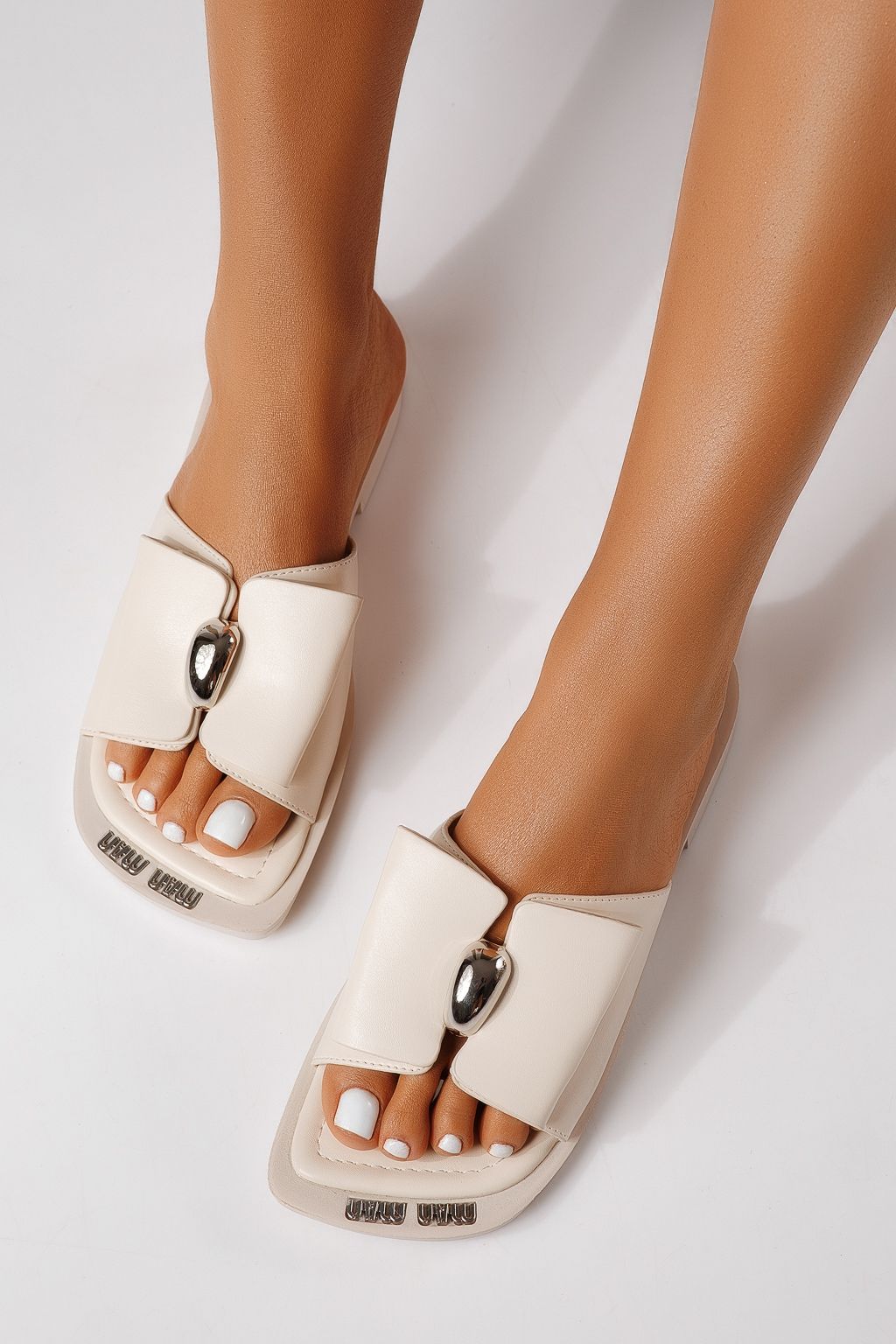 Női alacsony sarkú szandálok bézs öko bőrből készült Amaris #25167