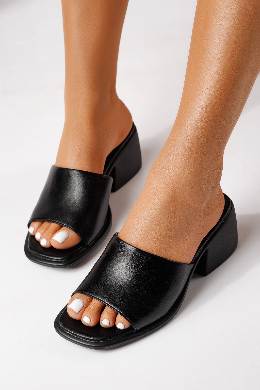 Női magas sarkú papucs fekete öko bőrből készült Indira #25170
